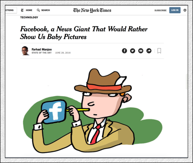 《紐約時報》記者邁克·艾薩克在相關報道的導語中寫道:幾年來,Facebook一直在引誘各種媒體機構,促使他們在拓展受眾時越來越依賴這個社交媒體平臺。現在,Facebook 向媒體們發出了一個新的信息:下調你們的預期。 《紐約時報》另一位聞名科技口記者、專欄作家法哈德·曼祖火氣好像更大一些。他當天在《紐約時報》刊發的另一篇長篇評論《作為新聞巨人,Facebook更愿意向我們曬娃》中揶揄Facebook:“在Facebook,向用戶提供有關這個世界的最新動向,老是要在后排排隊。寶寶的萌照先行!”他說:由于Facebook并不把自己視為新聞機構,看起來我們必需休止期待它象一個新聞機構那樣行事。我們要求傳統的新聞機構堅守正確、客觀、透明、公平這些原則。這些原則是否合用于Facebook?這可能是新媒體時代我們需要面臨的最大的困惑。 法哈德·曼祖說:Facebook有關算法調整以及算法調整的理由,讓媒體人感覺震動。