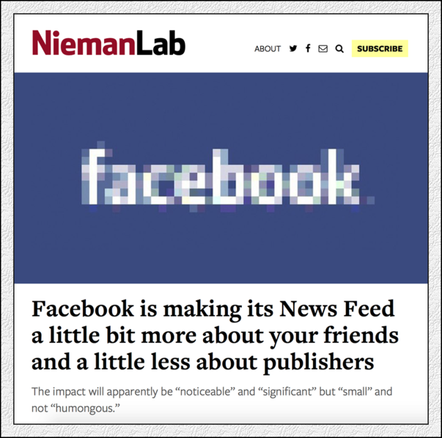哈佛大學聞名的尼曼媒體實驗室也發了評論,評論的標題看起來實話實說,沒有出人意料之處,但恍惚處理的題圖把Facebook幾個字折騰得面目全非,顯然有些感情用事。