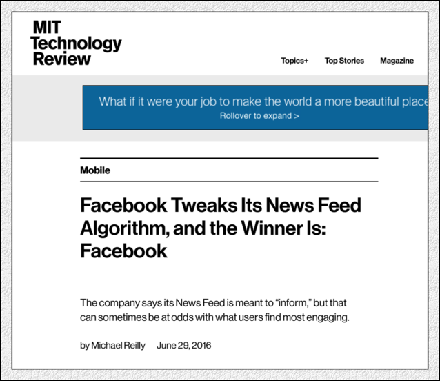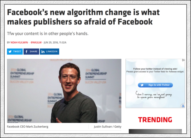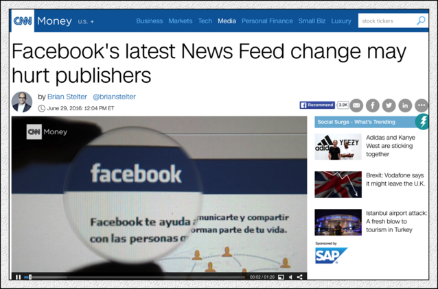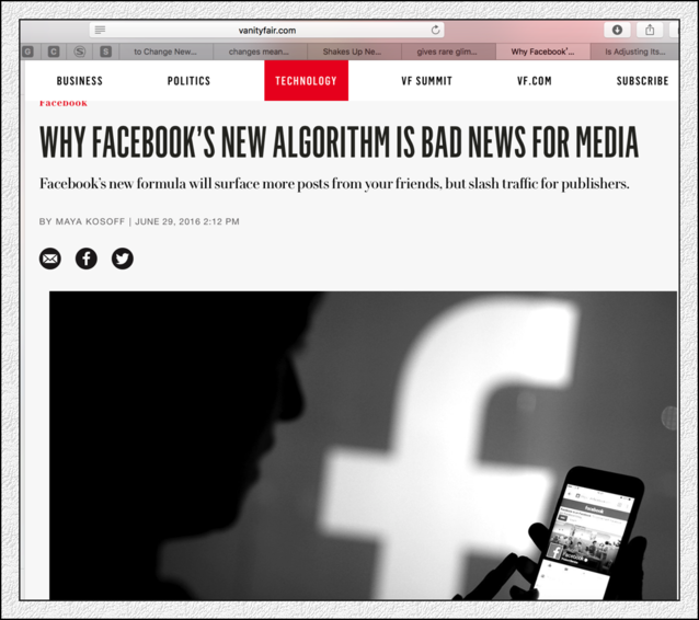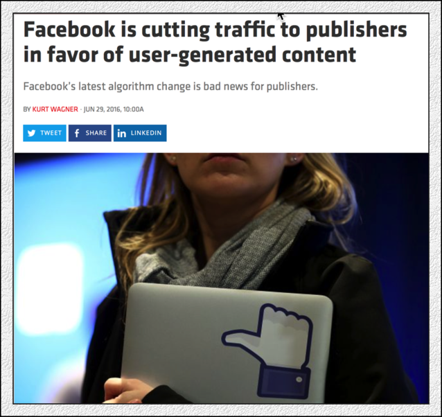 6月底,Facebook又公布調整算法了,這回調整,受傷的仍是媒體(Publishers)。幾乎所有的美國媒體這幾天討論的都是Facebook算法,以及自己身上正在流血的傷口。可怕的是,媒體們在進行這次報道的時候,洋溢的是某種哀怨,而不是憤怒。他們憤怒,但表現的只是哀怨。與狼共舞,不時地被狼咬上一口,很正常的。 在2016年5月經歷了“Facebook新聞偏見門”、Facebook “蒂爾門”兩次沖擊之后,美國的媒體可能無法想象,這么快又會面對一次來自Facebook的新的震撼教育。