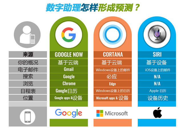在我看來,日歷構成了人工助理最重要的數據來源。當我前往上海出差,入住外灘某個酒店后,Google Now推送來一條離酒店不遠的幾個景點以及咖啡館。另一個日常的場景,當我告訴Google我的家庭位置和工作場所后,Google天天早上8點告訴我上班的路線規劃,而到了下戰書5點后,放工的路線規劃自動推送過來。 這一切的一切都可以這樣解釋:Google 知道我的位置,嗯,任何時間的位置。 假如說cortna與Google類似,那么Siri怎么做呢?Siri 的做法有點獨特,Siri會收集你在多個地方的位置數據,從而自動判定并猜測一些事情。好比,我就發現,Siri會常常告訴我上班路上的交通訊息,然而我從來沒告訴她我的家庭位置和工作場所,這部門的位置數據是Siri自動計算并推斷出來的。