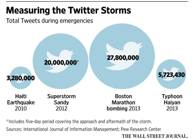 災(zāi)害發(fā)生后,社交媒體都步履了起來實在不僅是Facebook的平安信使功能,跟著社交媒體不斷滲透滲出進我們糊口的方方面面,人們對社交媒體的依靠加強,各類社交媒體在災(zāi)害應(yīng)急上的角色越發(fā)重要。 美國政府在幾回颶風(fēng)劫難后,對社交媒體越發(fā)正視。早在2010年,美國紅十字會的一份調(diào)查就顯示: 當(dāng)911報警電話無法買通時,1/5的受訪者會通過社交媒體、電郵等方式聯(lián)系救援職員;假如網(wǎng)民得知其他人需要匡助,他們中的44%會在社交媒體平臺上哀求他人幫忙,35%會在官方Facebook頁面發(fā)帖求助,28%的人會私信官方推特。 相關(guān)比例如今很可能已增長的更高。跟著人們對社交媒體越發(fā)依靠,對這些網(wǎng)絡(luò)平臺的信任度在不斷晉升。當(dāng)危機發(fā)生時,越來越多的人第一時間會在社交網(wǎng)絡(luò)發(fā)布動靜,并依賴社交網(wǎng)絡(luò)跟蹤事態(tài)進展。 美國聯(lián)邦應(yīng)急治理機構(gòu)稱,在2012年的颶風(fēng)桑迪登陸期間,民眾發(fā)出的超過2千萬條推特,很多是在颶風(fēng)最高峰時手機通信服務(wù)間斷的情況下發(fā)出的。而數(shù)據(jù)也顯示,在多次天然劫難中,推特用戶十分活躍。