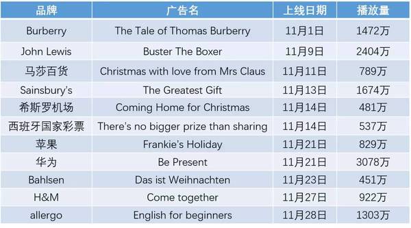 圣誕節(jié)對(duì)于企業(yè)的意義,已經(jīng)不再是一個(gè)促進(jìn)銷售的簡(jiǎn)樸節(jié)日。品牌們都但愿更專心地介入進(jìn)來(lái),并嘗試著傳遞一些價(jià)值觀。反正都要做廣告,那就做個(gè)高質(zhì)量的唄,它們這樣想。 其他領(lǐng)域的比較或許還白熱化,但廣告方面卻高下立判,并且近年來(lái)的差距還在逐漸拉大。每年,西方誕生的優(yōu)質(zhì)圣誕廣告越來(lái)越多,播放量、話題性乃至實(shí)際銷售數(shù)據(jù)都表現(xiàn)不錯(cuò),這也使得更多的品牌愿意大筆花錢,即使在這個(gè)不那么好的經(jīng)濟(jì)環(huán)境里。 而中國(guó)的企業(yè)和廣告人們?nèi)栽谠囂剑倘灰呀?jīng)開(kāi)始有了一些積極的嘗試,但進(jìn)程仍舊緩慢。春節(jié)就將到來(lái),這一次又能帶來(lái)多少像去年六小齡童《猴王世家》那樣的春節(jié)廣告,這個(gè)題目短短36天之內(nèi)就將有了謎底。 在此之前,我們或許可以從今年圣誕廣告的變化中汲取一些經(jīng)驗(yàn)。至少那些成功的廣告,會(huì)解答一些困惑,譬如如何和消費(fèi)者更好地溝通。 1、廣告大片 一部名為“The Tale of Thomas Burberry”的作品同時(shí)泛起在了評(píng)分網(wǎng)站IMDb和豆瓣上。IMDb上的評(píng)分是8.2,豆瓣的評(píng)分為8.3,達(dá)到了目前豆瓣片子TOP250的門檻。 作品導(dǎo)演是阿斯弗·卡帕迪爾,他執(zhí)導(dǎo)的作品《艾米》獲得了今年奧斯卡最佳紀(jì)錄長(zhǎng)片;編劇馬特·查曼憑借《間諜之橋》提名今年奧斯卡最佳原創(chuàng)劇本;男主角多姆納爾·格里森參演過(guò)《荒田獵人》和《星球大戰(zhàn):原力覺(jué)醒》;執(zhí)掌鏡頭的是憑借《藝伎回憶錄》獲得奧斯卡最佳攝影的澳大利亞人迪昂·畢比。 這看起來(lái)就是一部片子。除非留意到它的時(shí)長(zhǎng)——216秒,這時(shí)你才會(huì)發(fā)現(xiàn)它好像有些不一樣。 這個(gè)短視頻是Burberry為圣誕節(jié)推出的節(jié)日廣告。這個(gè)160年歷史的品牌,但愿在節(jié)日來(lái)臨的時(shí)候給消費(fèi)者講述一個(gè)故事,關(guān)于創(chuàng)始人Thomas Burberry發(fā)明防水面料嘎巴甸的過(guò)程。 制作團(tuán)隊(duì)將拍攝地點(diǎn)選擇了英國(guó)牛津郡的Shirburn城堡,并在那里搭建出了一條一戰(zhàn)時(shí)期的戰(zhàn)壕,設(shè)計(jì)工作室等場(chǎng)景的美術(shù)設(shè)計(jì)則參考了檔案史料。全片的本錢據(jù)稱高達(dá)1000萬(wàn)英鎊,均勻每秒本錢為39.5萬(wàn)元人民幣。 11月1日上線的這則廣告拉開(kāi)了今年圣誕廣告大戰(zhàn)的帷幕。一天時(shí)間內(nèi)YouTube上獲得的觀看數(shù)達(dá)到了178萬(wàn),而現(xiàn)在這個(gè)數(shù)字飆升至1472萬(wàn)。 YouTube下點(diǎn)贊最高的一條評(píng)論寫著:“Holy shit,我但愿這是一部真的片子。”在豆瓣上,一位用戶留言說(shuō):“我tm認(rèn)為是片子預(yù)報(bào)。”好像,只有粗話才能夠表達(dá)出內(nèi)心的狀態(tài)。 圣誕廣告越來(lái)越“大片化”,不只是Burberry在這么干。 H&M在11月27日推出了名為“Come Together”的作品。導(dǎo)演韋斯·安德森的代表作是《布達(dá)佩斯大飯店》,在去年奧斯卡中共計(jì)提名10個(gè)獎(jiǎng)項(xiàng)。 而今年,他將最喜愛(ài)的場(chǎng)景——行駛在大雪中的火車——引入到廣告當(dāng)中。講述了在一列因大雪而延誤的火車上,可能將錯(cuò)過(guò)圣誕狂歡的人們?cè)?0分鐘內(nèi)如何布置圣誕餐會(huì)的故事。對(duì)了,男主角艾德里安·布洛迪同樣是一位片子人,在2003年憑借《鋼琴師》斬獲最佳男主角。 退出中國(guó)市場(chǎng)的馬莎百貨,并沒(méi)有在圣誕廣告的制作上勒緊腰帶。它的圣誕廣告講述了圣誕白叟的妻子騎著重型機(jī)車,搭著直升機(jī)去匡助一個(gè)小男孩實(shí)現(xiàn)愿望的故事。濃厚的女權(quán)主義色彩成功羈縻到了一些女性觀眾,而女主角珍妮·麥克蒂爾也曾參演過(guò)多部片子。 圣誕,已經(jīng)成了品牌們非常珍視的廣告檔期,而非簡(jiǎn)樸的廣告時(shí)段。企業(yè)的經(jīng)營(yíng)者們逐漸達(dá)成了一種共鳴:不僅要提供廣告,更重要的是提供精心拍攝的優(yōu)質(zhì)廣告。 “該片子讓我們對(duì)Thomas Burberry長(zhǎng)久而卓越、交織著20世紀(jì)歷史跌宕放誕放誕起伏的一生有了一定的了解。” Burberry首席創(chuàng)意總監(jiān)兼首席執(zhí)行官Christopher Bailey用“片子”一詞注解了自己對(duì)圣誕廣告的想法主意。 2、John Lewis的申明鵲起 今年的圣誕廣告大戰(zhàn)始于Burberry廣告的發(fā)布。之后的一個(gè)月,各大品牌紛紛推出了自己的廣告,讓這個(gè)檔期顯得十分擁擠。 固然,廣告主分布在各個(gè)國(guó)家、各個(gè)行業(yè),但它們難得地形成了共鳴:用故事來(lái)吸惹人們的留意力。事實(shí)也證實(shí),相較于不加控制的品牌露出和促銷信息,那些娓娓道來(lái)的品牌收成了更大的影響。 今年發(fā)布圣誕廣告的部門品牌及播放量 當(dāng)然,圣誕廣告從來(lái)都不是新鮮的事物,例如今年已經(jīng)是蘋果圣誕廣告推出的第33年。但作為廣告檔期存在的圣誕歷史并沒(méi)有那么長(zhǎng),在這個(gè)過(guò)程中,英國(guó)百貨商店John Lewis扮演了樞紐的角色。 它在2007年推出了首支圣誕廣告,隨后形成每年定時(shí)發(fā)布廣告的習(xí)慣。2011年的圣誕廣告