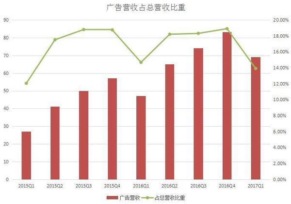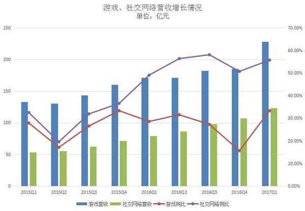 在騰訊發布新一季度財報之前,一眾剖析師都非常看好。而在這之前,羅永浩曾直言“騰訊股市漲得比北京房價好”。那么騰訊新一季度的效果到底有剖析師所猜測的那么好嗎?別的收割很多玩家的《玩著榮耀》游戲又給騰訊奉獻了多少收入? 5月17日,騰訊發布了2017財年第一季度的效果陳述。該季度公司的營收為495.52億元(71.82億美元 ),同比增加55%;運營盈余192.72億元(27.93億美元),同比增加44%;公司權益持有人應占盈余為144.76億元(20.98億美元),同比增加58%。 作為早年建立的互聯網公司之一,騰訊的開展也閱歷了幾次大的戰略調整。從近來兩年的財報數據來看,公司的營收和凈利潤增速在持續上升且創了新高。但在2015Q2和2016Q4這兩個季度,營收曾遭受下滑。 騰訊開始以及時通訊東西發家,現在公司的事務現已掩蓋游戲、交際網絡、付出、云核算等。從營收構造來看,公司首要有增值效勞事務營收、網絡廣告事務營收和別的事務營收三大首要來歷。其間,增值效勞事務依然為公司奉獻了最多的收入。 游戲立異高,占總營收比重有所上升 作為騰訊最掙錢的事務大頭,該季度公司的增值效勞營收同比增加41%至351.08億元。 其間,來自網絡游戲的收入增加34%至228.11億元。游戲事務增加首要由智能手機游戲(如《王者榮耀》、《穿越前方:槍戰王者》及《龍之谷》)及PC客戶端游戲(如《英豪聯盟》、《FIFA Online 3》及《地下城與勇士》)所奉獻。盡管這次騰訊沒有發布《王者榮耀》的詳細效果,但上個季度公司曾泄漏游戲的日活潑用戶超越了5000萬。 詳細來看,來自PC客戶端的游戲收入為141億元,同比增加24%;來自智能手機游戲的收入為129億元,同比增加57%。 別的,來自交際網絡的收入增加56%至122.97億元。該項收入增加首要反映數字內容效勞(包含數字音樂、視頻及文學效勞)及虛擬道具銷售收入的增加。 近來幾年,經過自研IP游戲、代理游戲以及“買買買”的方法騰訊現已是全球最掙錢的游戲公司。正如剖析師所猜測的,騰訊的游戲收入又帶來了“驚喜”——創了前史新高。 不過,為了疏解收入構造單一帶來的潛在危險,騰訊一向都在擴大別的事務的營收,然后降低游戲在總收入中的占比。 從游戲和交際網絡營收增速的比照圖來看,近來兩年時間里前者都要慢于后者。從這兩項事務占公司總營收的比重來看,交際網絡一向保持在20%-30%之間。而游戲收入占比則在直線降低,在2016Q2降低至50%一下,在2016Q4占比僅為42.14%。但到了該季度,占比又有所上升。 網絡廣告營收增速趨于穩定,交際廣告同比增加67% 除了游戲外,網絡廣告算是騰訊要點規劃的事務之一了。 在這之前,騰訊曾調整了廣告事務的人事錄用,以進一步挖掘該事務的潛在價值并提高它的戰略地位。此前還有業內人士剖析認為,未來騰訊也許會開展成了一個以廣告事務為主的公司,比方廣告營收占比高達85%的Facebook。 該季度網絡廣告的營收同比增加47%至68.88億元。但比較2016Q3和2016Q4的74億元和83億元則有所降低。從曩昔兩年的數據來看,來自網絡廣告的增速現已離別之前動輒三位數的增加,而保持在40%-50%之間。 從廣告占總營收的比重來看,比較前幾季度也有所降低,為13.91%。這一數字要低于交際網絡在總營收中的占比。關于廣告事務的開展,騰訊現已在國內外進行積極的規劃,不知道終究是否能取得不錯的效果。 在該季度,騰訊對廣告事務的詳細區分進行了調整。不再是效果廣告和品牌展現廣告,而是按廣告特點和非廣告特點來區分: