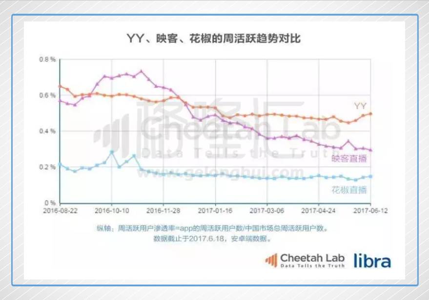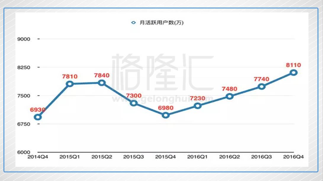 最后吧,作為一個資深玩家,許多直播軟件我都玩過,可是陌陌的打賞功用很是雞肋,有木有?我要是真喜愛哪個主播,用得著在直播間打賞,打賞了人家不必定看得見,我直接在她主頁下送禮物不就得了,這是經驗之談。 所以,我暫時會脫離陌陌,直到它真的值得玩。 ▌三、陌陌的劫癥:直播完了,還有啥? 確實,陌陌這次大改版,頗具爭議。看好的人說,這豐厚了陌生人交際的場景,不看好的人覺得陌陌過于急進,這次改版,透露出商品司理滿滿的無法:A干到頭了,加個B吧,或許能成,還不成?加個C吧,A+B+C必定可以的。 真的可以嗎?顯著不行,微信不是QQ上加個東西加出來的。但陌陌這么做,肯定是遇到疑問。 啥疑問呢? 1、用戶規劃天花板 在2017年榜首季度,陌陌月活潑用戶達8520萬,對比2016年3月的7230萬,同比增加17.84%,對比上一季度8110萬,環比增加5%。這種趨勢的連續,上文也提到,2016開端的直播浪潮是立了大功的。