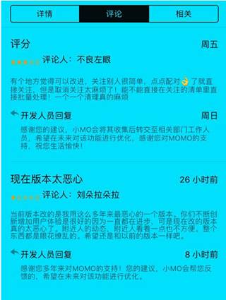 原先的鄰近的人呢?放最上面這么一個進口,這么不注重?玩陌陌的,不都是找鄰近的人么,這么一改我得操作好幾步。新加的幾個功用,點點、快聊、狼人殺、派對,除了狼人殺還有點用,別的功用誰會玩?一上來就視頻,為難不為難?并且,這不是我一自己的定見,你看appstore上成堆罵陌陌8.0改版的,一星評估數超越5星,評估前史最低,用力過猛了……