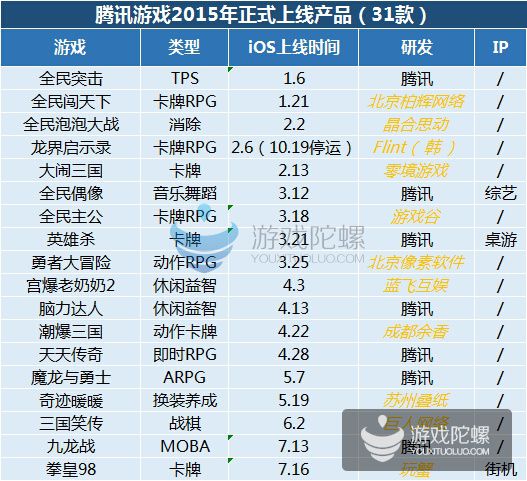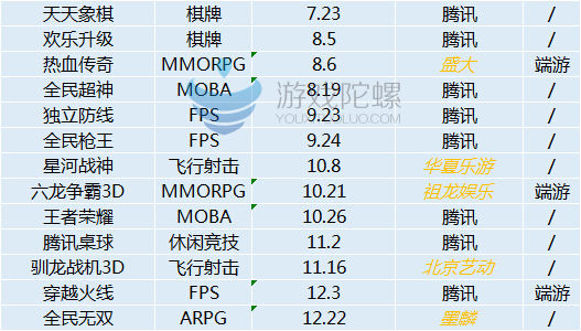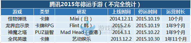 不外,在2015年,騰訊發行的產品中,據不完全統計已泛起4款停運游戲且集中在10月份。