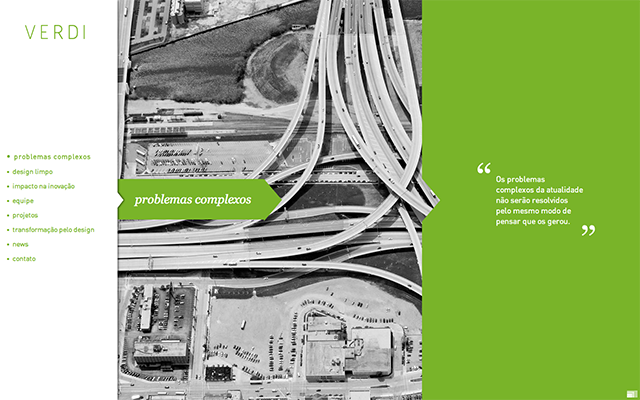 6.VERDI的網站頁面運用了色塊“拼接”的效果,從白到灰再到綠色。白色和灰色都是中性色,所以頁面中的綠色很天然的成了最搶眼的一部門,這樣的搭配方式也讓畫面更富有運動感。
