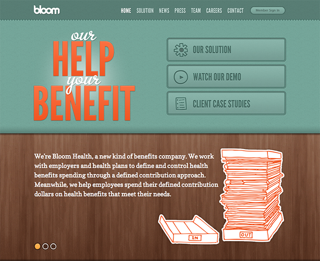 2.Sprout的網站沒有沒使用大片的綠色,只是在灰度較高的背景上加了一些綠色的裝飾來做點綴。但這些元素并不只是美觀而已,同時也在無形中指引著我們,反差顯著的綠色和黑灰色讓用戶能輕而易舉的分辨出信息重點。