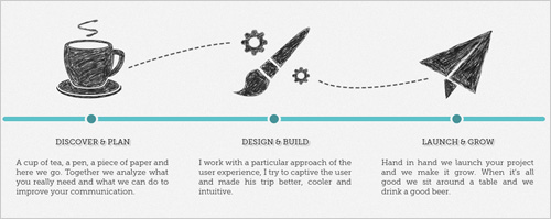 識別度與個性化 手繪風格帶來更高的識別度,讓用戶記住你的產品。例如 Windows 上聞名的代碼編纂器 Notepad++ 的新 logo: 變色龍主體圖案不僅恰到好處地展示了產品本身的功能(高亮代碼的積累和變化),同時圖標本身也顯得相稱可愛,捉住了用戶的留意力,匡助用戶把 Notepad++ 和競爭對手的編纂器產品區分開。 人道化與親近感 手繪風格帶來人道化與親近感。告訴用戶產品呈現的內容背后有著活生生的人,并且這些人已經仔細地考究了產品的細節,讓它看上去更加真實,更值得信賴。 iPad 上聞名的兒童數學訓練應用 MathBoard 復刻了黑板的觀感,孩子們甚至可以直接用手在“黑板”上寫出數字。這樣的設定讓算術訓練不那么冰涼和枯燥,具有了一絲人道化的色彩,更加易用,更有吸引力。 信息傳達與內容構建 信息的傳達方式決定了用戶是否會看到和理解這些信息。手繪風格可以更有效、更清楚地傳達信息。下面是三個例證: 解釋產品特性 描述一個產品特性可能需要好幾行字,假如用手繪的話,一張圖就夠了。聞名的應用測試服務 TestFlight 在其網站上先容特性時使用了四個便簽形式的草圖來配合文字描述。在傳遞產品特性信息的同時也使網站變得圖文并茂,更加易讀。 展示工作流程 與其用大段文字解釋產品操縱中第一步做什么第二步做什么,不如給每一步配上一張清楚的手繪圖,增加可讀性,大為減少文字的用量。 引導用戶 使用手繪圖標可以有效地引導用戶進入產品和網站的各個部門。例如之前我們先容過的 Stamped,其網站上用卡透風格圖片來引導用戶進入各個種類的網頁。 團隊展示 用戶老是會很想知道網站、產品或者服務背后的人,因此一個有愛的團隊展示頁面上顯得尤為重要。僅僅提供聯系方式是遠遠不夠的,還需要向用戶展示他們要聯系的這群人有著怎樣的個性和氣質,要讓團隊顯得平易近人而又值得信賴。要達到這樣的目的,使用手繪圖片是一種很好的做法。例如—— The Knock Knock Factory 的團隊成員展示方式: Polecat 的整體展示方式: 以及 Grove 的真實照片配手寫字體的展示方式: 故事講述 手繪圖最早和最常用的功能就是用來講述一個故事了~ 無論是為了解釋產品的功能,仍是為了加深用戶對產品的印象,使用手繪圖進行故事講述都是有效的方式。 好比,聞名原型圖工具 Axure 首頁掛著這樣一幅用戶體驗職員和產品經理工作自我吐槽的簡筆畫。很好地引起用戶的共識,增強用戶對產品的好感。 Tourist Eye 用三幅連環畫解釋自己的產品功能。 引起用戶留意 假如要吸引用戶點擊某個地方,那么手繪的圈點和箭頭會是很好的選擇。好比說這樣: 有的時候,使用多個箭頭也是可以的: 當然,要留意適可而止,濫用手繪箭頭的話,效果適得其反—— |