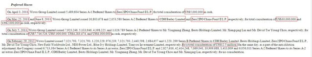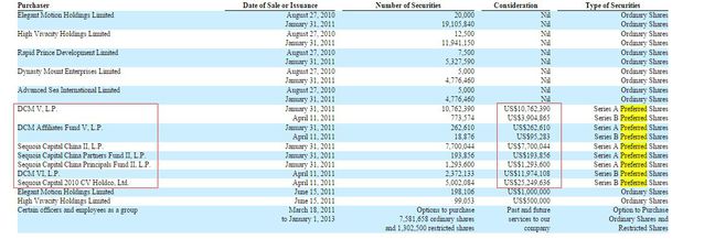 但翻出窩窩團招股書中的History、Preferred Shares及Financing actvities三欄數據,整個2011年窩窩團共計融資為5500萬美元,約為報道2億融資額的1/4。 2011年4月,清科資本投了500萬美元。接下來5月和6月,鼎暉、清科分別跟投了3000萬、200萬美元。7月,Besto Holdings、天助等機構共計注資1800萬美元。 招股書詳細信息如下: