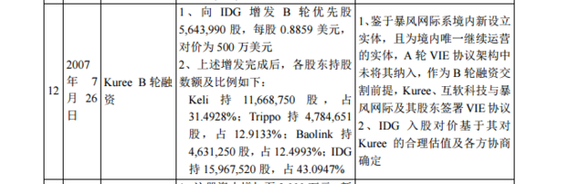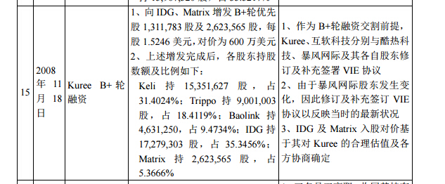 但狂風科技招股書顯示,在2008年11月18日,向IDG、Matrix增發B+輪優先股1,311,783股及2,623,565股,每股1.5246美元,對價為600萬美元,不足報道中1500萬融資額的一半。