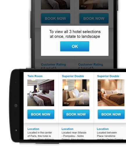 9、告知用戶選擇更公道的屏幕方向 不同的屏幕方向下,用戶的瀏覽體驗會完全不同的。用戶慣于在統(tǒng)一屏幕方向下完玉成部的操縱,所以提醒他們切換方向可以晉升網(wǎng)站瀏覽的用戶體驗。所以,當(dāng)你的網(wǎng)站偏向展示性,并且使用橫屏?xí)r瀏覽體驗更佳的話,不妨使用行為召喚設(shè)計來提示用戶。