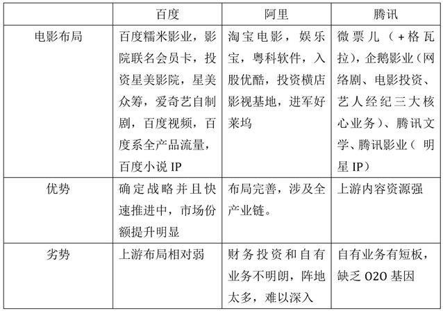 百度:快速進擊拆開來說,百度今年對片子行業的投入力度是BAT中最大的,這與百度200億轉型O2O的團體戰略息息相關。 2015年,百度糯米影業幾件重要事情是,投資星美院線,推出影院聯名會員卡,上線超級影院商城,與星美合作眾籌新影院,推出“實時票房、用戶畫像、搜索指數、口碑輿情”大數據產品,除了百度糯米產品支持之外,百度手機搜索、百度輿圖四周都對片子流量完全放開,另外結合鼎力度的院線線下推廣。 這些聽起來簡樸,實在背后是百度內部資源的大整合,包括流量、技術,以及從戰略到執行的快速推動力。 利用從淺到深的原理,百度糯米影業今年以會員+帶動銷售,弱化團購,而是用虛擬會員卡的方式跟二十來個品牌院線合作,籠蓋了超過80%的票房來源地。用大數據產品以及高價值流量,來取得跟院線的深度合作,用市場推廣進行線下YIN流。 百度糯米影業正在從下往上入侵片子行業工業鏈,從銷售切入去深入院線,影響發行,用優質流量為院線以及單獨的片子提供宣發服務,下一步應該就是制片,以及再上游的IP培育了。 百度糯米影業現在要不要做影片的制作發行暫時不可知,不外愛奇藝自制劇能力不錯。而百度小說也可以成為IP起源地。跟著在片子行業的深入滲透滲出,這些提上日程也只是遲早的事情。 總體來說,百度糯米影業在片子行業也屬于后來者,但最大的上風是百度全力以赴快速進擊,這是百度與阿里、騰訊最不一樣的地方。也恰是如斯,百度在這場爭斗中,應該有更多勝算。 阿里:買買買阿里在片子行業中的布局用三個字可以形容“買買買”。從博納到粵科,從橫店到好萊塢,都留下阿里金主的身影。 博納是籠蓋片子制作、發行、廣告、藝人經紀多方位一體的全工業鏈公司,而粵科軟件公司,是院線系統“火鳳凰”制作商。之前在線選座的介入者,以能與火鳳凰直接交換數據為榮。否則就只能從第三方接入“二手數據”。 阿里巴巴與浙江橫店成立影視公司,要主攻未來的高科技大片兒。另外還公布要進軍好萊塢,把國際上的好片子引入中國。在自有產品支持上,除了淘寶片子之外,還有理財產品娛樂寶。 這種大開大合的布局,真是讓人費解。這意味著,要么很厲害,像圍棋巨匠,看似閑子,最后卻連成殺局。要么只是在做財務投資,只是看起來很戰略而已,實在未必須要買通。 恕作者駑鈍,比較偏向后者,究竟阿里巴巴也不是萬能的,來往、口碑都沒太做好,淘寶片子砸下巨額補貼,今年進展也一般般。另外在阿里整體布局中,本地糊口一直是高舉輕打,不落實處,不知片子會不會意外? 騰訊:松耦合的方陣騰訊系孵化了一個微票兒,把格瓦拉合并了。這種高維攻擊低維的方式,應該頗讓創業者心寒吧。 騰訊之強,微信之勢已經不需要贅述。但是,騰訊系在片子行業的布局是強者松耦合的狀態。旗下有騰訊影業和企鵝影業,內部有整合了格瓦拉的微票兒團隊。 騰訊影業側重于發掘與聯動內外部在文學、動漫、游戲等多個泛娛樂領域的明星IP,核心是打造更廣泛影響力與更多貿易價值的明星IP,而企業影業將在網絡劇、片子投資、藝人經紀三大核心業務上發力。 騰訊影業、企鵝影業乃至合并了格瓦拉之后的微票兒,單獨拎出來都還尚可。但對于片子行業的全整合來說,彼此之間的間隙大了點兒。 好比,影業培育的IP到片子制作,本身還有間隔,而有了片子之后,才能到發行、銷售推廣。另外,即使微信擁有龐大的流量,但是微票兒在銷售的同時,也不能給到某一個單獨的影片以推廣資源。 所以這個耦合的方陣本身也存在良多無法銜接的區間,當然,跟著時間推移,這些空缺都可以被填補,但在能不能做和想不想做,以及做不做得成之間,又會多出良多變數。 所以說,2016年互聯網入侵片子行業很可能泛起垂直產品被生態打壓的變局。幾年前,格瓦拉曾經占據華東區在線選座超過70%的份額,但是卻被團購起家的貓眼片子截胡,2016年,垂直深入的貓眼則可能被BAT壓制,百度生態支持下的百度糯米片子,是最有望沖擊市場領先地位的。阿里和騰訊要鋪的面兒都太大了,收成期還得靠后。 年末將至,各家賀歲檔、春節檔從宣傳到銷售,又在爭得人仰馬翻。再過2個月,就會有新的銷售數據和排名了。  |