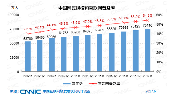 7 51億網(wǎng)民!到 2017年6月,我國(guó)互聯(lián)網(wǎng)普及率現(xiàn)已到達(dá)54 3%,非網(wǎng)民還有6 32億。昨天下午,我國(guó)互聯(lián)網(wǎng)絡(luò)信息中心(CNNIC)發(fā)布第40次