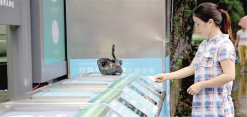 圖為廣東省廣州市海珠區(qū)輕工學(xué)院內(nèi)的智能廢物分類桶。廢物放到桶上面會(huì)自動(dòng)掉下去,市民刷卡后會(huì)對(duì)應(yīng)得到積分。 (材料圖像) 如今,我