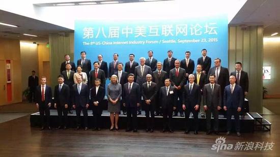 中國國家主席習近平和參加中美互聯網論壇的中美聞名企業的總裁合影 (西雅圖中文電臺臺長蘇小元 拍攝) 中國國家互聯網信息辦公室主