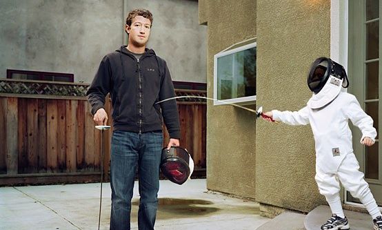 圖注:Facebook創始人扎克伯格酷愛擊劍運動,喜歡把貿易競爭看做是競技場上的搏殺在谷歌大樓的一間會議室里,放著一幅巨大手繪壁畫。該畫描