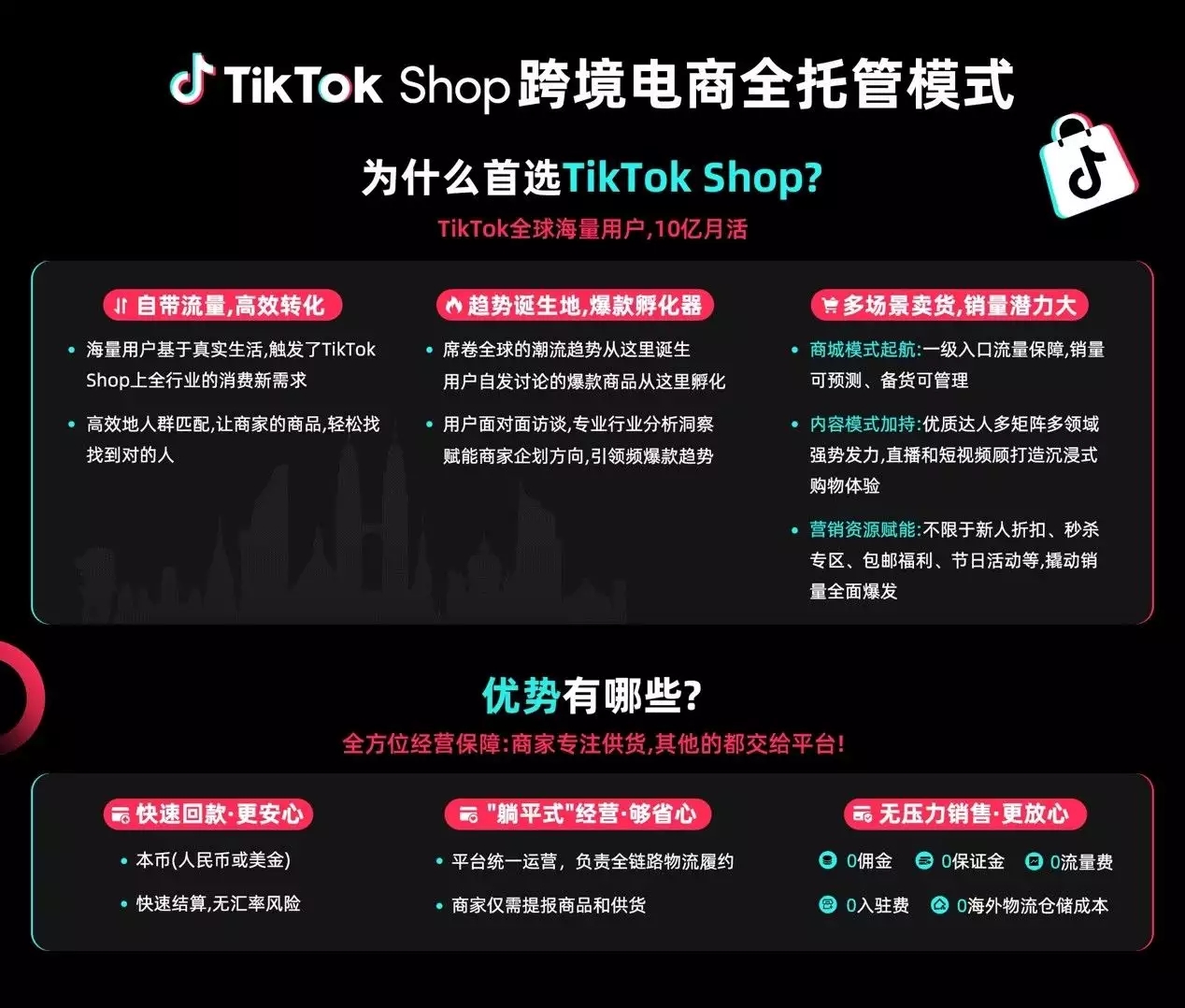 TikTok Shop跨境電商5月16日宣告推出“全保管”運(yùn)營形式,為商家供給更為快捷、高效的銷售渠道。商家只需供給產(chǎn)品供貨,減輕了運(yùn)營本錢和危險(xiǎn),