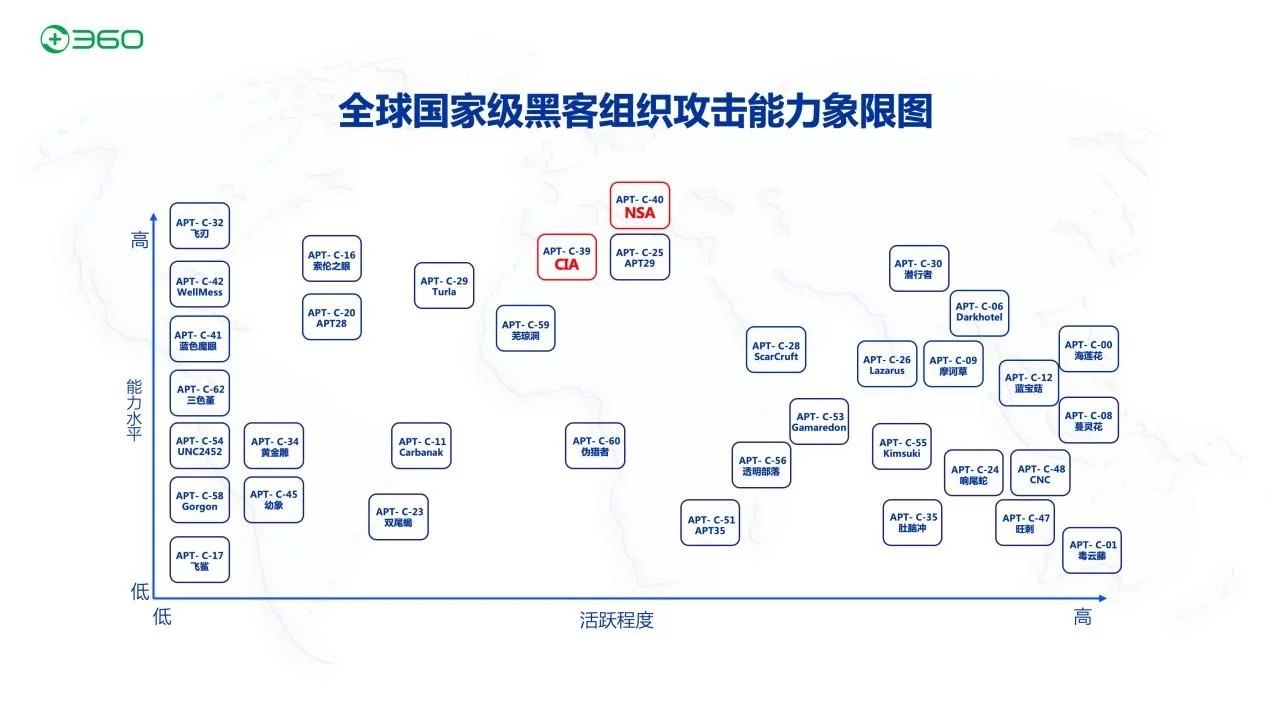 9月8日電 9月8日,三六零(601360.SH,下稱“360”)公司發布全球首個國家級黑客安排進犯才能象限圖,從才能水平緩活躍程度兩個維度,