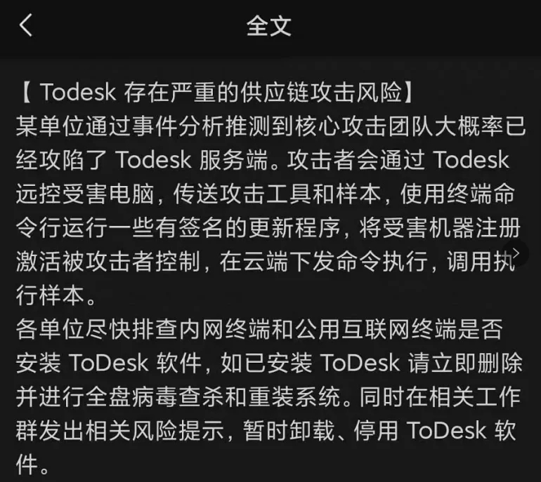 就在前幾天,大名鼎鼎的長途操控軟件To Desk被爆存在安全縫隙,更有知情人士To Desk總服務器已被拿下,進犯者會經過To Desk遠控受害者電腦傳送進犯樣本,
