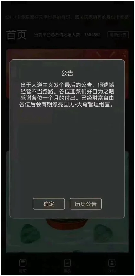 繼加密錢銀LUNA崩盤風波后,代幣市場也起波瀾! 6月6日,一張關于蒼穹元世界數字藏品渠道跑路的公告在網上撒播。