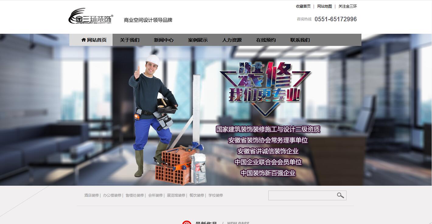 合肥金三環裝飾有限公司成立于2004年,注冊資本570萬元。國家建筑裝飾裝修施工與設計二級資質,是安徽省裝飾協會常務理事單位、安徽省講誠信裝飾企業、中國企業聯合會會員單位、中國裝飾新百強企業等。
