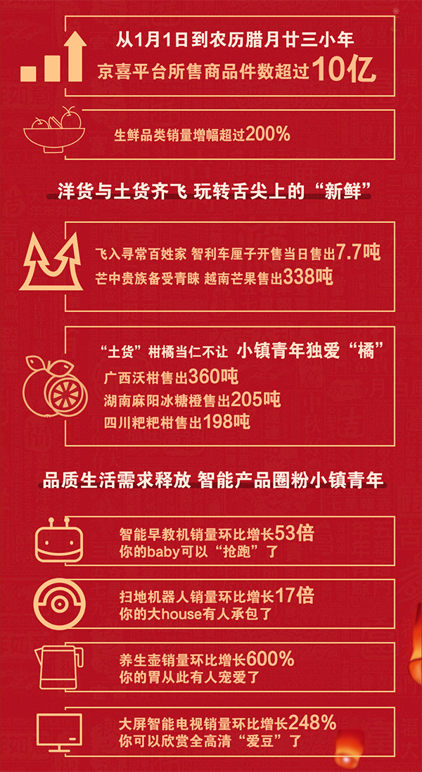年味漸濃,我們的年貨都準備的怎么樣了?京喜發(fā)布了2020年貨節(jié)期間的數(shù)據(jù):1月1日至1月17日小年期間,京喜渠道累計出售產(chǎn)品件數(shù)超過10億:作為年貨剛需品的生鮮品類銷量增幅環(huán)比超過200%,