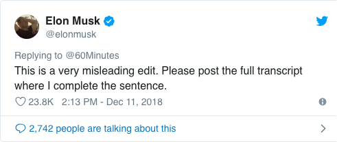 北京時間12月10日消息,特斯拉公司CEO埃隆·馬斯克(Elon Musk)在承受哥倫比亞廣播公司《60分鐘》節(jié)目采訪時稱,他并不尊重美國證券交易委員會(SEC),之所以恪守SEC和解條款是因為他尊重美國司法系統(tǒng)。