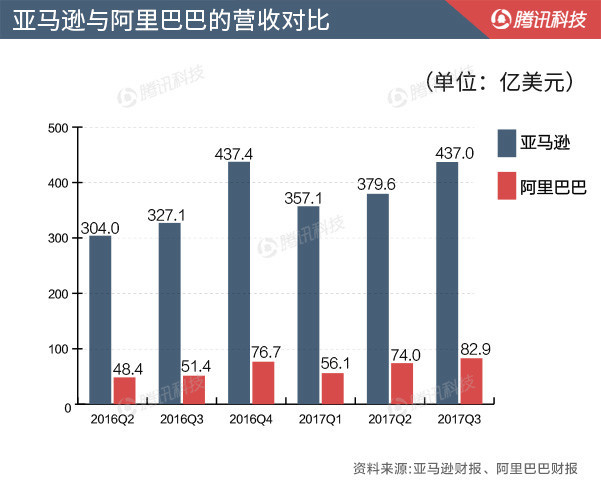 亞馬遜、阿里巴巴相繼發布2017年第三季度財報。亞馬遜本年體現亮眼,但阿里巴巴體現更好。阿里巴巴趕超亞馬遜的腳步更近了。市值方面,阿里巴巴也曾在10月10日盤中一度超過亞馬遜。