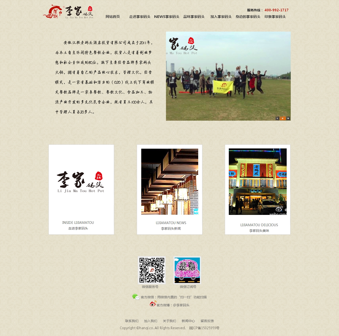 客戶案例:http: www hanqi co 安徽漢騏老碼頭酒店投資有限公司成立于2011年,為本土自主休閑特色餐飲企業,投資人是有著創業夢想和社會