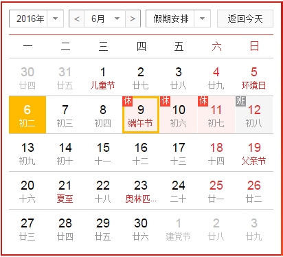 端午節即將來臨,根據國務院2016年端午節放假通知精神,結合我司實際情況,作出以下放假鋪排:2016年6月9日(木曜日)至2016年6月11日(禮